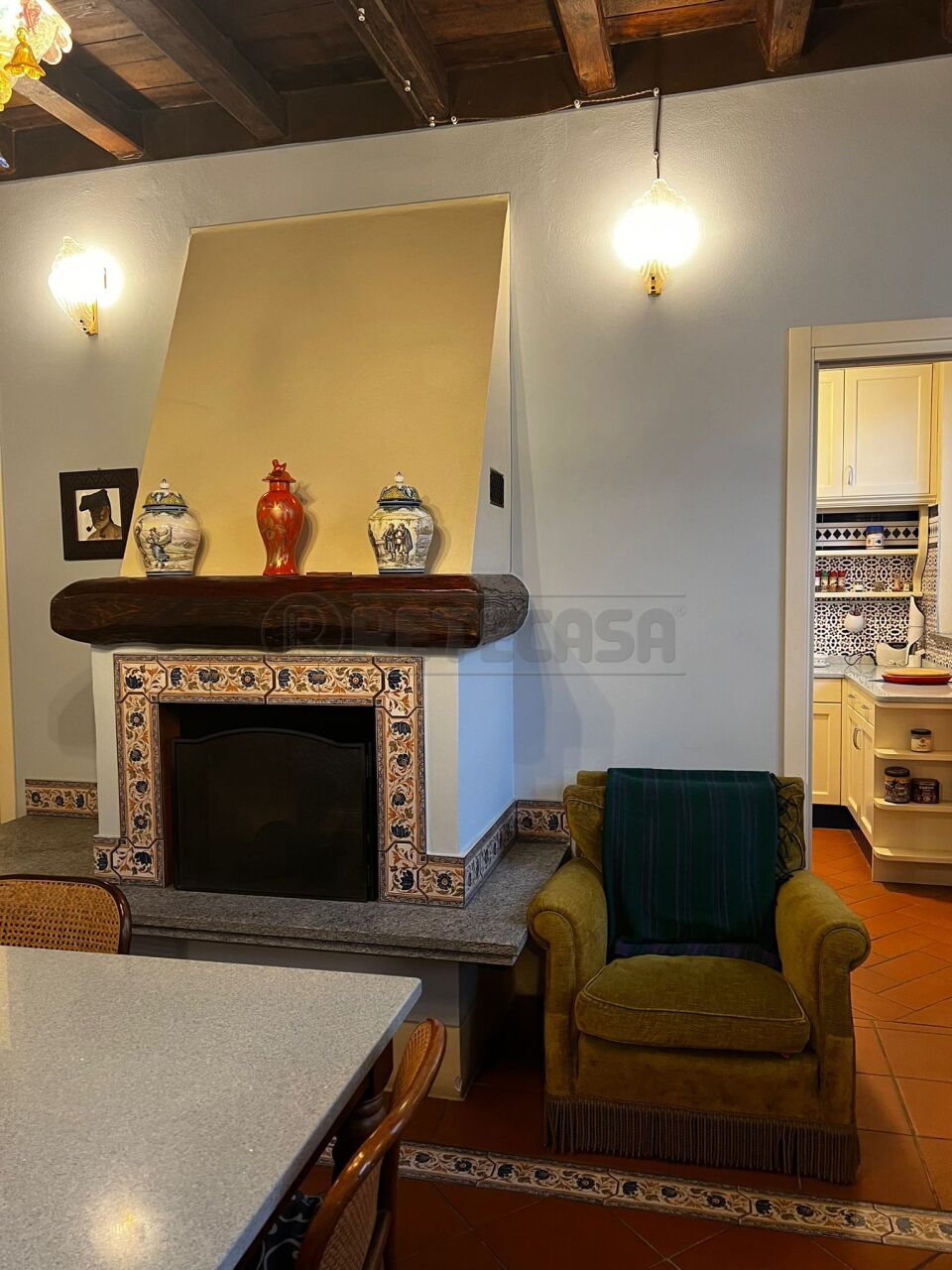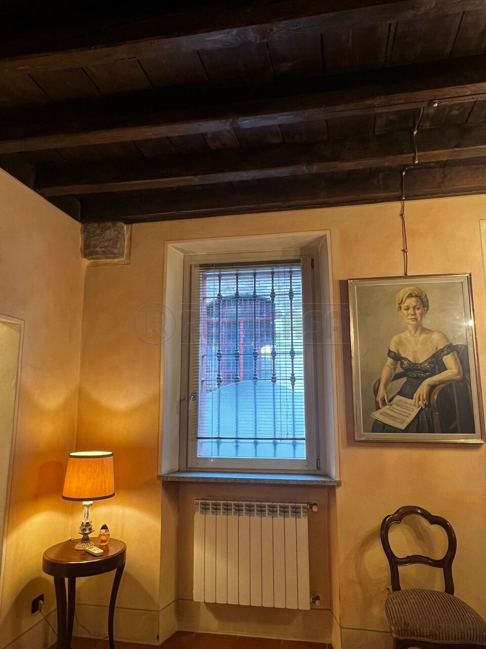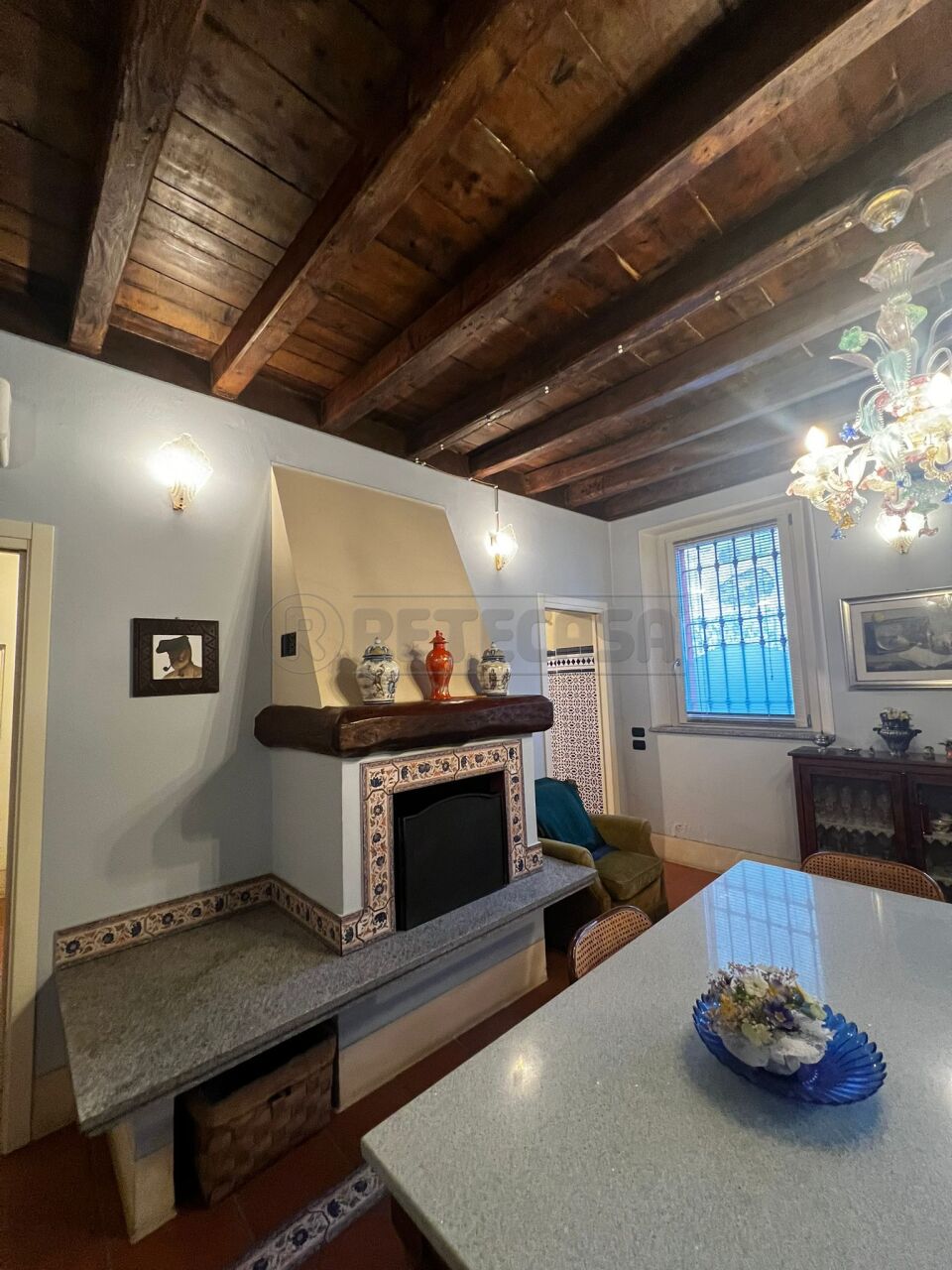 Finiture ottime: serramenti in legno con doppi vetri, porta blindata, pavimenti in parquet, camino nella zona giorno e travi a vista.
